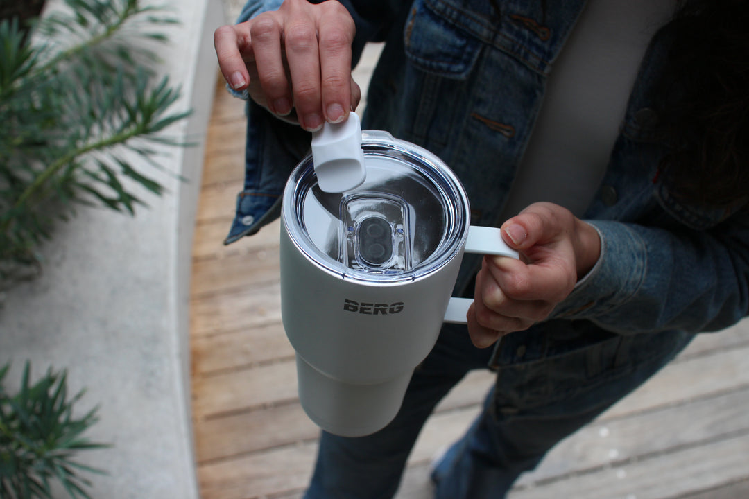 Crafted with BERG's premium 18/8 BPA-free food-grade stainless steel and equipped with dual-walled vacuum insulation, the Drift Tumbler keeps your drinks hot or cold from dawn to dusk. The wide mouth design allows for easy sipping and hassle-free ice insertion.